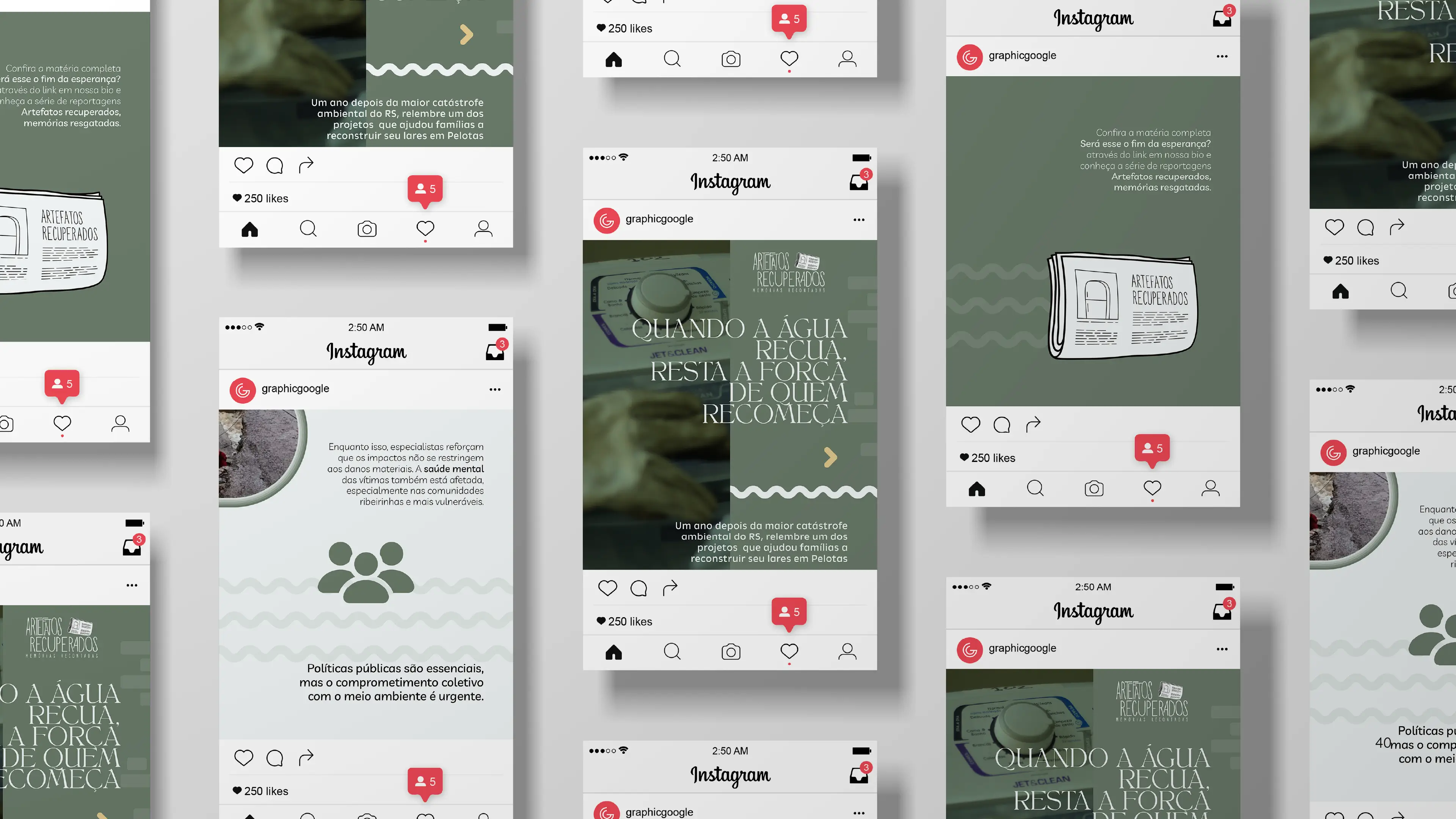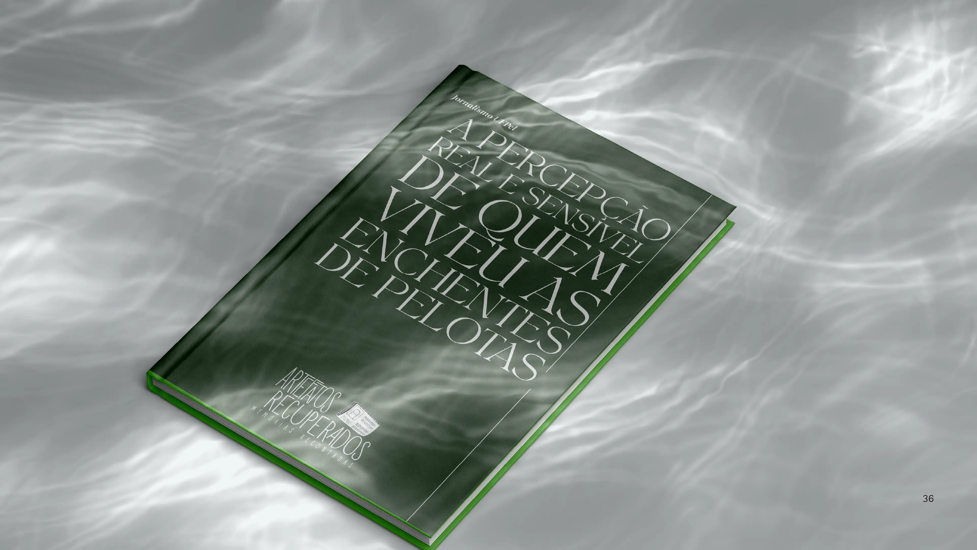 Por fim, com o objetivo da propagação de memória e transmissão de narrativas com viéssensibilizado e empático, a tipografia escolhida para o ‘Artefatos’ busca um senso do conforto, agora que a água já passou, em meio à seriedade da vida durante as enchentes.